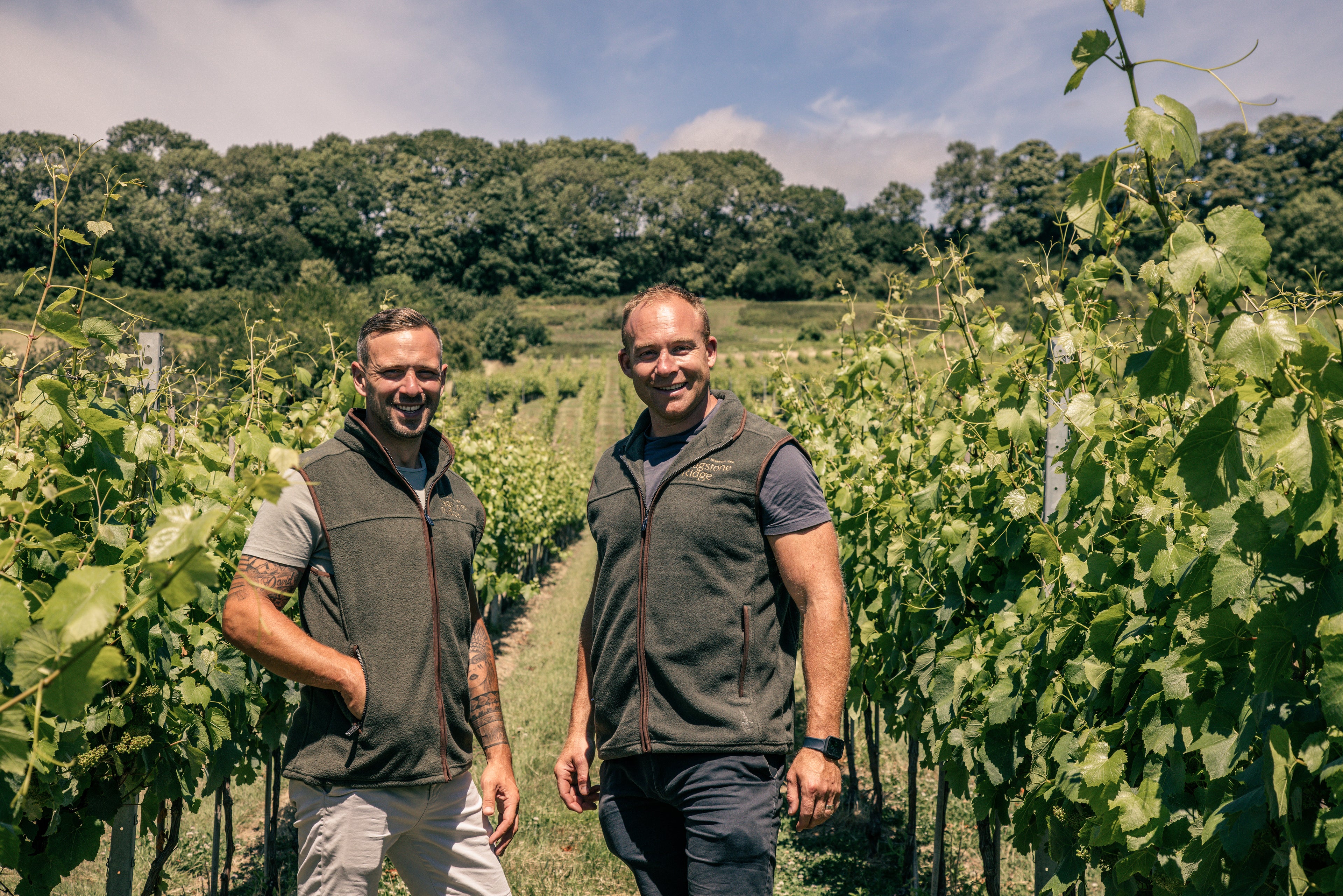 In the heart of the Kent countryside, in the village of Boughton Monchelsea, Phil and James Catt are bringing new life to a centuries-old tradition. Alongside their thriving wholesale business, the cousins have been carefully cultivating Ragstone Ridge – a 20-acre vineyard first planted in 2019.